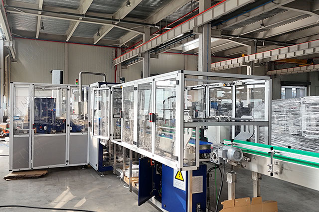 膜包機(jī)是基于包裝薄膜受熱收縮的特性而設(shè)計(jì)制造的高效率、連續(xù)作業(yè)的包裝設(shè)備。它可將單個(gè)產(chǎn)品(如PET瓶) 自動(dòng)排列、集合成組、推瓶裹膜,最后經(jīng)加熱收縮、冷卻定型形成集合包裝。包裝后的產(chǎn)品捆綁牢固,外型規(guī)整、美觀,節(jié)約包裝成本。