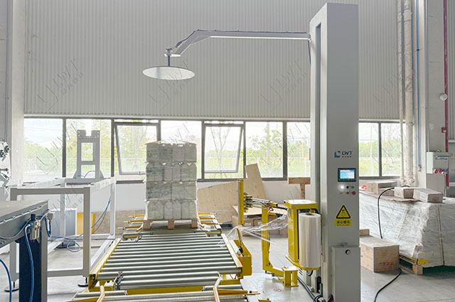 對(duì)碼垛后的產(chǎn)品進(jìn)行纏繞,增強(qiáng)穩(wěn)固性。