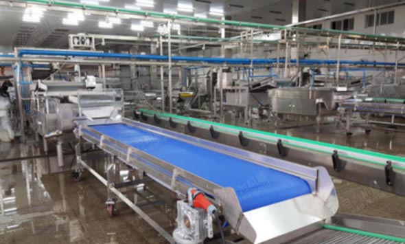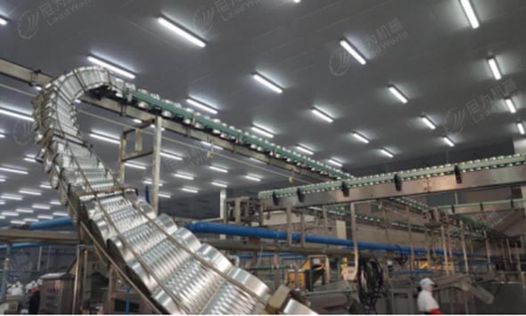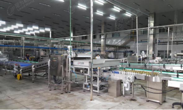 尼為機械為江蘇雙孢菇生產線提供整個產線升級改造:原產線使用的推罐裝卸籠全部替換為磁力裝卸籠、空罐卸垛、實罐碼垛,為此減少了傷罐,破罐,扁罐,避免刮傷擦傷。