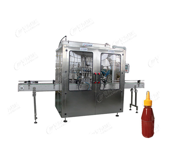 該客戶選購的是8頭濃醬灌裝機(jī),使用伺服控制,灌裝精度0.5%~1%,料缸使用電磁閥控制液位,達(dá)到一定的量會(huì)自動(dòng)關(guān)閉。軟管使用意大利進(jìn)口軟管,光電使用德國(guó)勞易測(cè)光電,清洗:控制屏設(shè)有專門清洗功能,卡箍易拆易清洗,且設(shè)有防滴漏裝置。